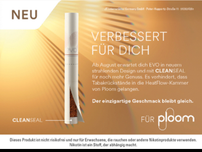 Seit August 2025 gibt es die EVO Tabaksticks nun in neuen leuchtendem Design. Auch neu ist das sogenannte CLEAN-SEAL. Es verhindert, dass Tabakrückstände im Ploom Gerät zurück bleiben.